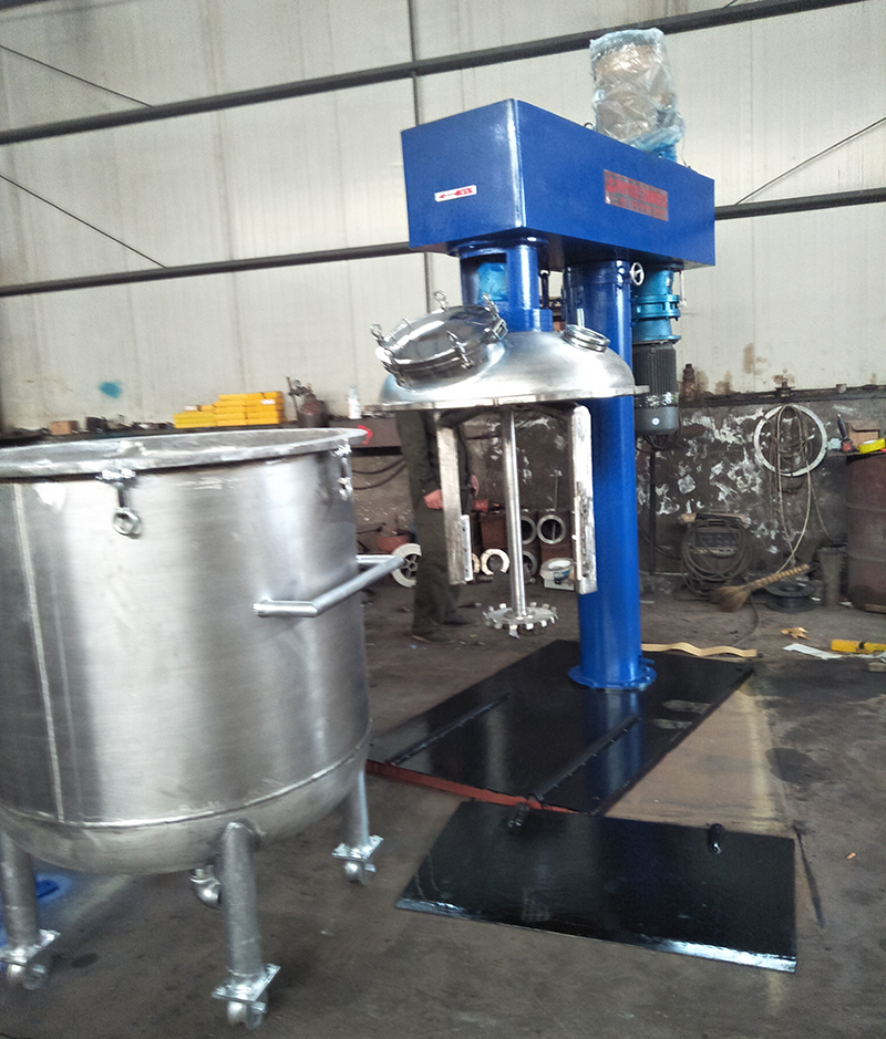 真空攪拌罐,由電動機全速運轉帶動主軸,經主軸轉動乳化框槽內之乳化翼片,使其將桶槽內之液體經框槽上、下兩側之導流葉片吸入環(huán)狀框槽內,經以主軸為中心高速圓周旋轉葉片。